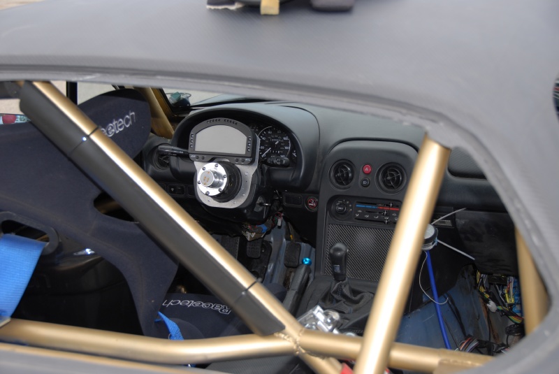 Interior of Matt Andrew's Blue & Carbon Turbo Miata.